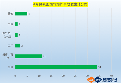 2017年4月發(fā)生在居民家中的燃?xì)獗ㄊ鹿蕿?4起,飯店、商戶發(fā)生11起,較3月份略有減少。